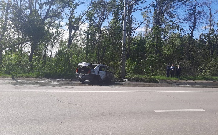 В Шахтах 30 апреля около 9:00 по проспекту Александр-Грушевский водитель Renault Logan выехал на встречку и врезался в столб уличного освещения. После удара машины загорелась.