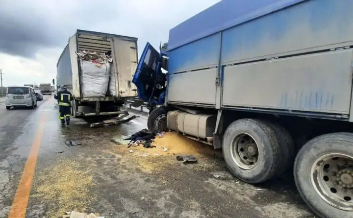От удара кабину машины виновника ДТП разворотило, а трассу засыпало зерном. Водителя «Камаза» с места ДТП госпитализировали.