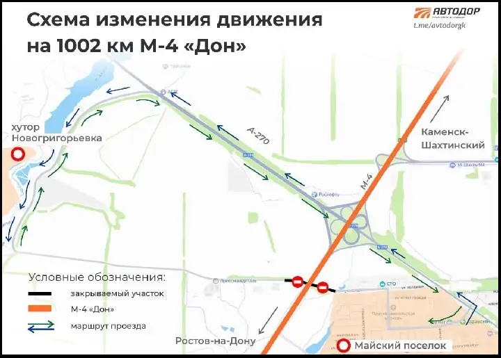 Напомним, ограничения связаны с проведением масштабной реконструкции на трассе М4 «Дон» с 933-го по 1024-й километр. Участок проходит по территории Каменского, Красносулинского и Октябрьского районов, а также через Каменск-Шахтинский и Шахты. Дорогу предстоит расширить до шести полос.