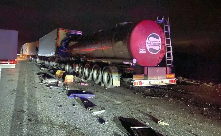 Массовое ДТП произошло около 19:00 12 ноября на 970-м километре федеральной трассы М4 «Дон» в Красносулинском районе. По данным отдела пропаганды УГИБДД по Ростовской области, 60-летний водитель большегруза Volvo с полуприцепом не выбрал безопасную дистанцию до движущегося впереди «Камаза» и врезался в него, а «Камаз» по инерции столкнулся с идущем перед ним грузовиком JAC и легковушкой Honda. После этого JAC также по инерции протаранил грузовик MAN с полуприцепом.