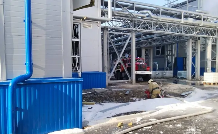Жилые дома, по её словам, не пострадали. Но есть разрушения в самом производственном здании, пожар от взрыва пока не потушен.