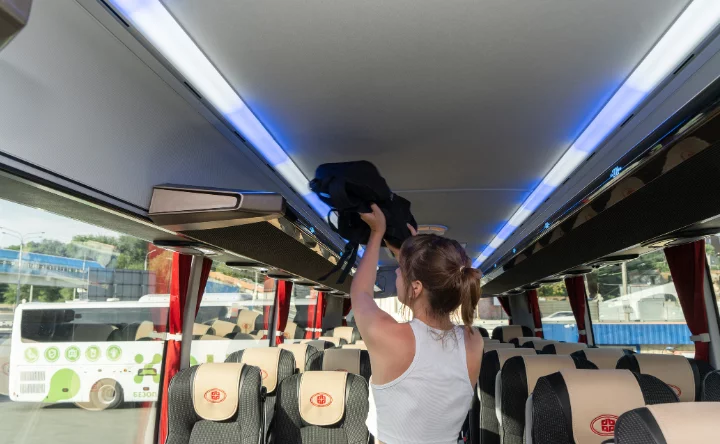 Как отметили в компании Xbus, акцент делается на комфорте и безопасности пассажиров. Чистые и просторные салоны оборудованы трёхточечными ремнями безопасности, удобными мягкими сиденьями с регулировкой спинки в двух положениях, кулером с питьевой водой, зарядными устройствами USB под сиденьями, климат-контролем и ТВ-системой.