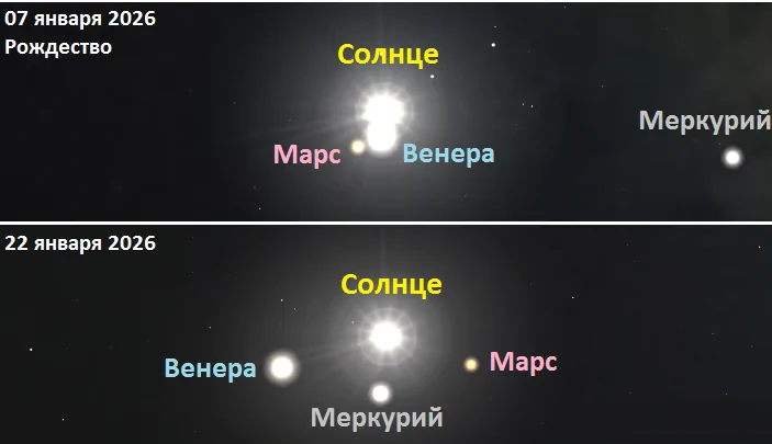 К 22 января все три планеты окажутся на минимальном среднем угловом расстоянии от Солнца — около трёх градусов. В этот день они образуют на небе почти ровный ромб, что станет кульминацией события.