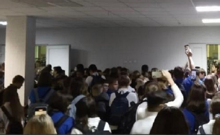 Как сообщают в местных Telegram-каналах дети и родители, в этот день в школе начал работать гардероб, из-за чего и возникло столпотворение.