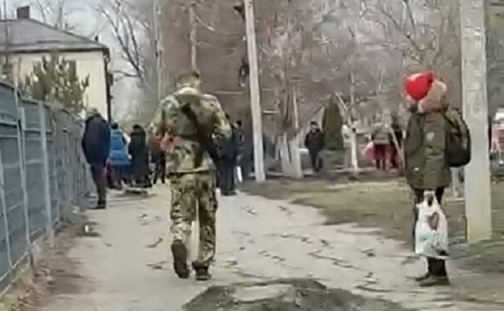 В Шахтах днём 7 марта полицейские задержали двух мужчин в камуфляжной форме. Об этом сообщили в соцсетях местные жители и опубликовали два видео. На одном из них видно, как возле забора лицея идёт мужчина в камуфляже, а за спиной у него автомат.