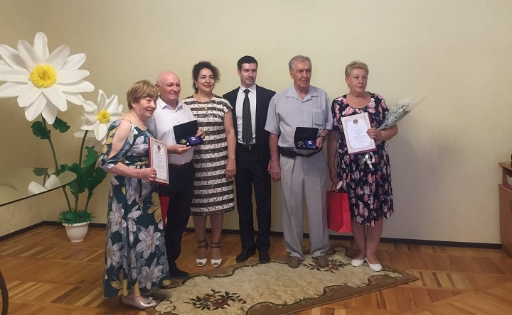 В День семьи, любви и верности в Советском районе Ростова наградили две семейные пары, у которых за плечами полувековая история счастливой совместной жизни. Медали «За любовь и верность», а также памятные подарки (домашние сервизы) юбилярам 8 июля вручил секретарь районного отделения партии «Единая Россия» Сергей Заревский.
