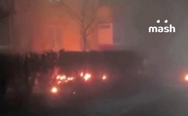 Местные жители сообщают, что обломки БПЛА рухнули в жилом дворе, после чего начался пожар.