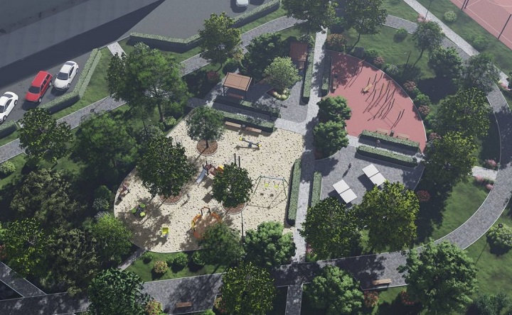 В сквере должны появиться спортивная и игровая площадки. На территории планируют уложить новую плитку и высадить деревья, кустарники и новый газон. В зонах отдыха появятся лавочки и теневые перголы.