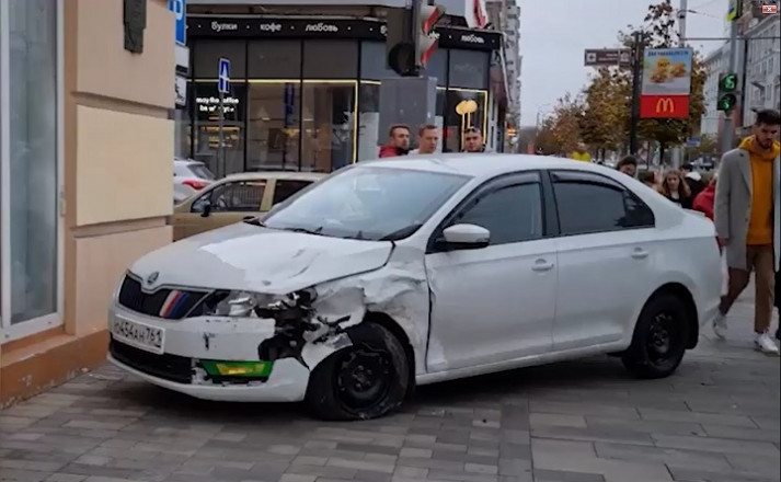 Разбитая машина остановилась на тротуаре в нескольких сантиметрах от стены здания. По данным Telegram-канала Don Mash, внутри белой легковушки находились три человека.В отделе пропаганды регионального ГИБДД подтвердили факт ДТП в центре города и сообщили, что никто из людей в столкновении автомобилей, к счастью, не пострадал.