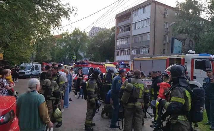 По словам жильцов, в квартире на 7 этаже, где вспыхнул пожар, жили или квартиранты, или любители выпить. Сейчас весь дом обесточен.