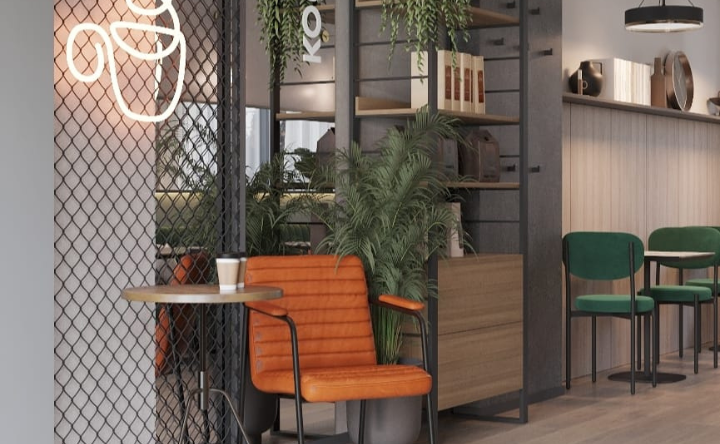 В итоге получилось уютная кофейня на 14 человек. В интерьере — необычные архитектурные детали, которые создают особую атмосферу.