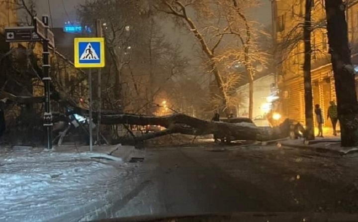 Большое дерево рухнуло прямо на дорогу в центре Ростова. ЧП произошло вечером в воскресенье, 26 декабря на пересечении Университетского и Суворова, рядом с Театром кукол.