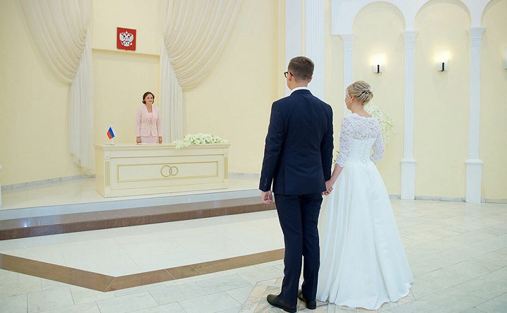 Попросить о торжественной церемонии может любая пара, заплатить при этом нужно только стандартную госпошлину. Дату и время выбирают сами брачующиеся при подаче заявления. Церемония проводится в зале торжественных церемоний, который обязательно должен быть украшен флагом и гербом России.