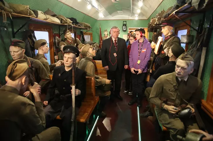 После этого Василий Голубев вместе с ребятами из молодёжного «Движения первых» посетил уникальную передвижную выставку-музей «Поезд Победы», остановившуюся на железнодорожном вокзале «Ростов-Главный» на четыре дня — с 11 по 14 февраля. За это время экспозиции посмотрели свыше 3,3 тысячи человек.