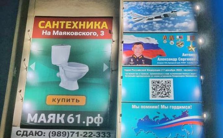 В Ростовской области разразился скандал после размещения двух рекламных баннеров в Волгодонске: на одном был портрет Героя России волгодонца Александра Антонова, погибшего в СВО, а на втором — реклама сантехники.
