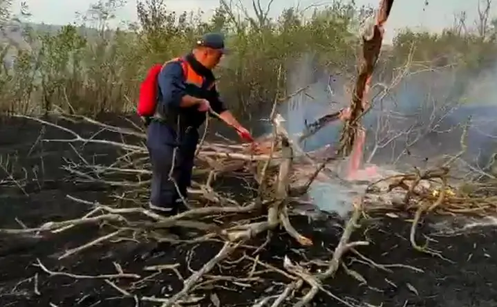 Чтобы справиться с огнём, МЧС задействовало сначала вертолёт Ми-8, а потом к тушению привлекли самолёт Ил-76. Он способен за один раз сбросить на очаг возгорания 42 тонны воды.