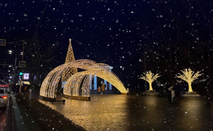 Впервые для новогоднего украшения города используют три световые арки «Двойная снежинка». Композиции высотой не менее 5 метров и шириной не менее 7 метров установят на площади Советов.