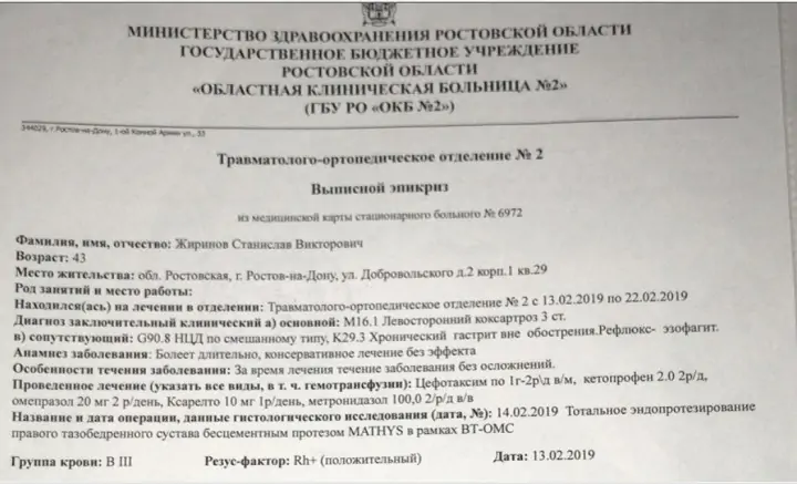 Скриншот медицинского заключения, фиксирующего проблемы Станислава Жиринова со здоровьем.